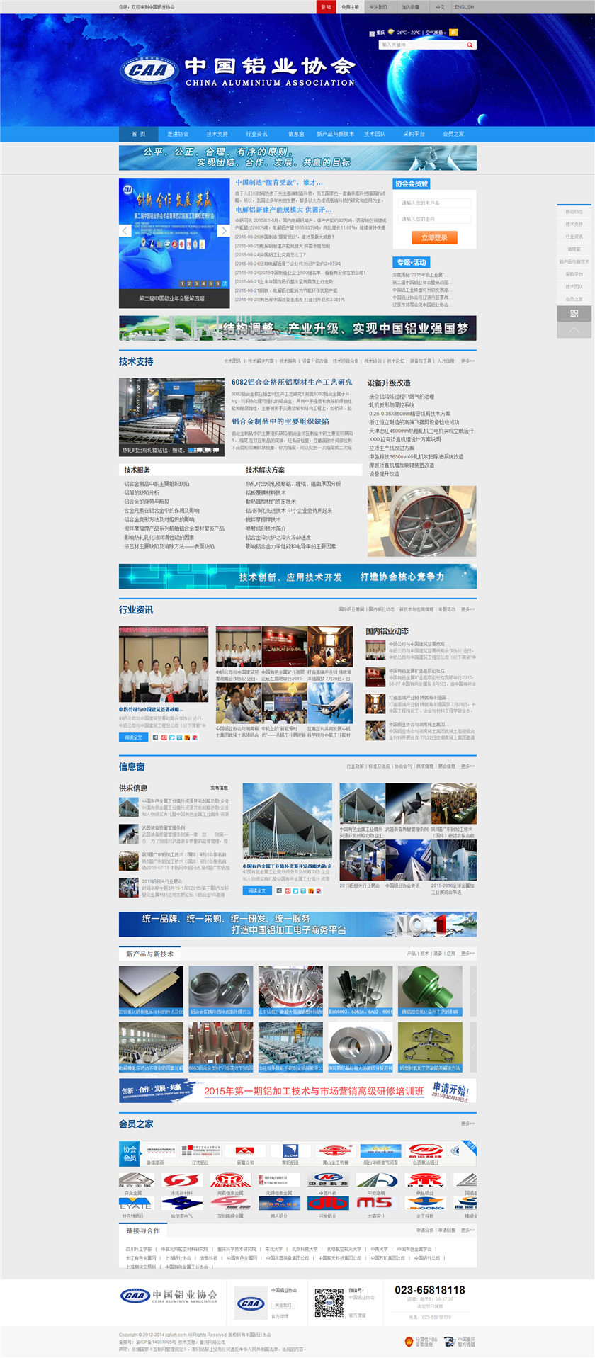 Project Description 中国铝业协会是由中国国内主要从事铝合金铸造、板、带、箔、管、棒、型材、锻件等企业组成的行业协会组织,协会由国内具有一定规模和影响力的企业发起,已有三百多家会员企业,目前还有很多企业踊跃希望加入,协会现有会员企业年销售额1000多亿元人民币,协会会员企业分布在国内华东、华南、西南、环渤海、东北、胶东半岛等中国经济活跃地区;产品涵盖航空航天、兵器装... Official website address 乌兰察布http://www.caa2014.com I want to share